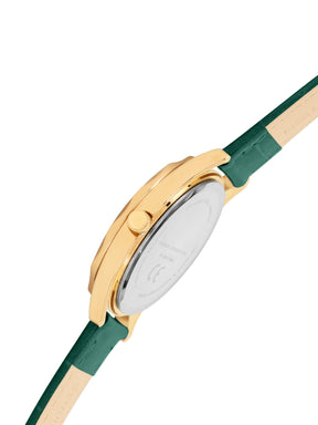 Introducing the Liora watch, model number FCB11NL, a perfect blend of elegance and functionality. This 3 Hands timepiece features a stunning IP Gold case made of durable Metal. The watch has a case size of 32MM and a case thickness of 8.0MM, ensuring a comfortable fit for any wrist. The dial boasts a unique Green color with a MOP feature, making it stand out in any light. The strap comes in a luxurious Green color, crafted from Leather for a sophisticated touch.